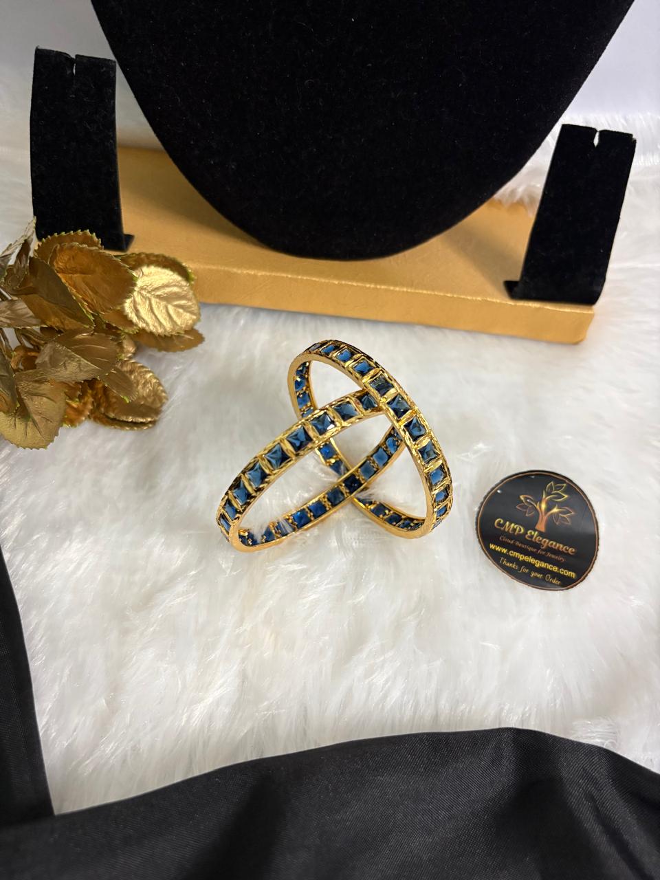 Description: CMP25496 Broad Square Stone Bangles, available in red, green, and yellow. Navy Blue Adds elegance and sparkle to festive and party looks.