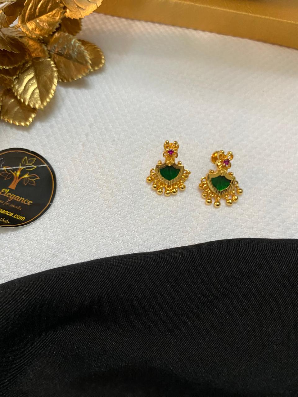 Grab this beautiful pair of Kerala-style Palakka Earrings for just ₹199! Crafted with gold covering finish and signature green palakka stones, this design is ideal for daily traditional wear, simple festive looks, or pairing with matching attigai or necklace sets.